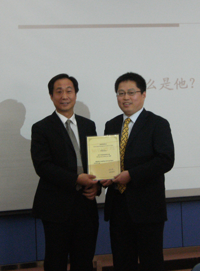 (左:頒獎嘉賓中國人民大學信息資源管理學院副院長張斌教授 右:2009年知識管理人物韓建新)