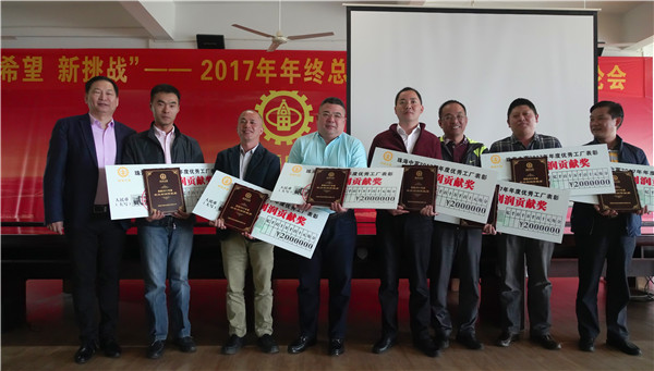 為了增強公司的凝聚力,表彰先進,樹立楷模,傳遞正能量,公司決定評選和表彰2017年度優(yōu)秀工廠、特殊貢獻先進個人、優(yōu)秀員工和技術(shù)標兵。獲獎的工廠廠長分別向與會者分享了成功經(jīng)驗。