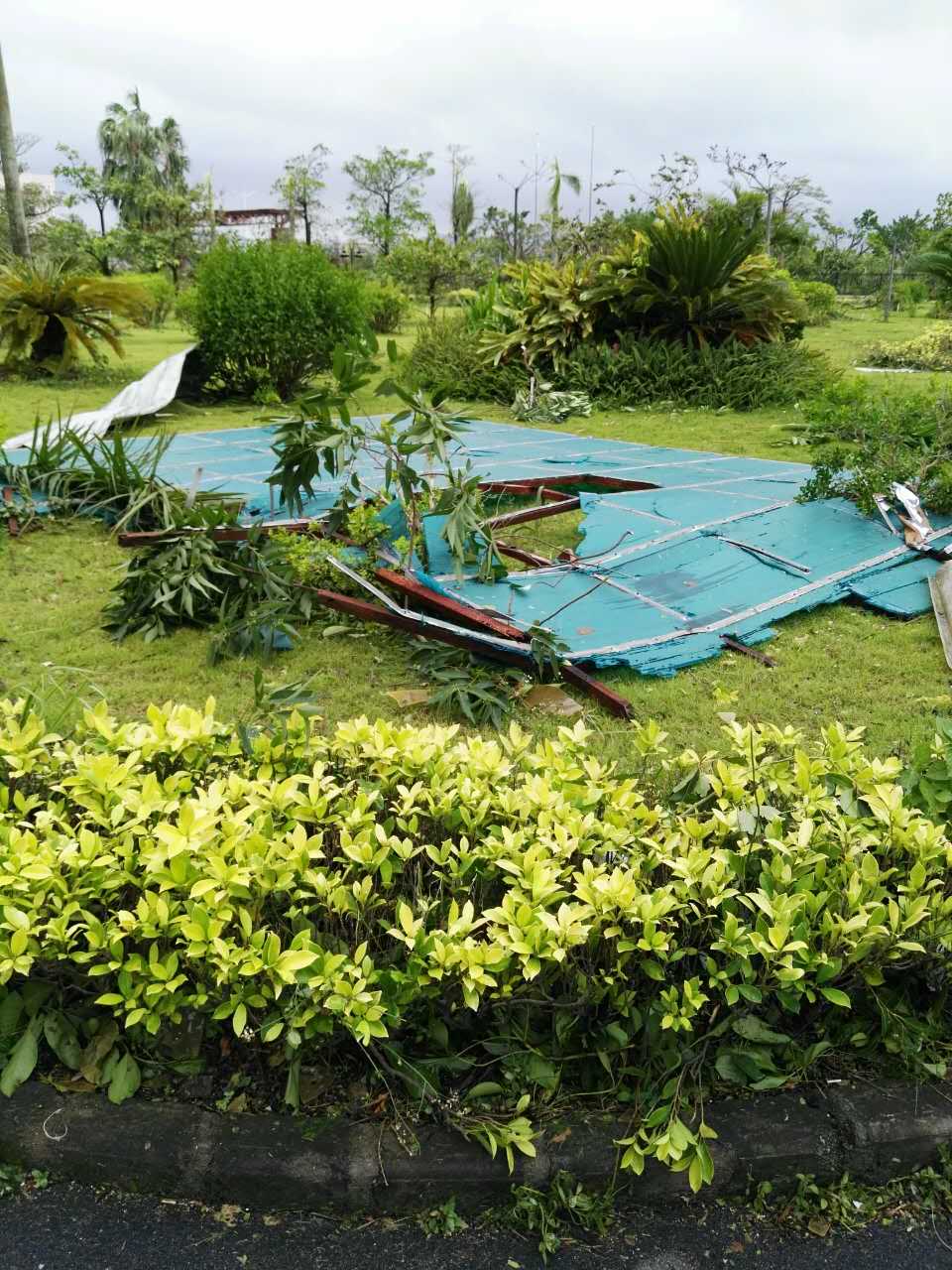 狂風過后,原本優(yōu)美如畫的中富園區(qū)一片狼藉。