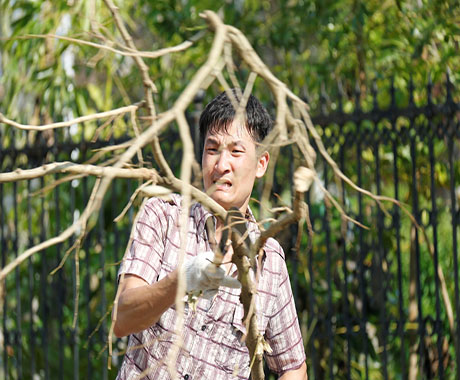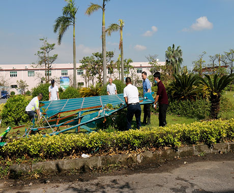 因2次臺風連續(xù)而猛烈的破壞,園區(qū)內(nèi)隨處可見倒臥的樹木及斷枝、被吹落的屋頂鐵皮、保溫棉垃圾。為盡快恢復園區(qū)的環(huán)境,29日在中共中富總支部的倡議下,由黨員、志愿者組成的搶險小分隊,頂著毒辣的太陽及高溫天氣,大家不怕臟、不怕累、手持砍刀將倒下的大樹鋸斷搬走,用掃把、鐵鏟將園區(qū)內(nèi)吹倒的樹桿、鐵皮、玻璃等垃圾雜物一 一清理干凈。在清理現(xiàn)場,公司領導張海濱總經(jīng)理親臨現(xiàn)場參加并指導。在熱火朝天的現(xiàn)場,不論是辦公室人員還是車間人員,不管是男同胞還是女同胞,均不分彼此,全力而為,隔著屏幕都能感覺到大家滿滿的正能量。無情的臺風雖然破壞了美麗的家園,卻也讓我們再次看到了一個個愿意奉獻、不怕辛苦的中富人。